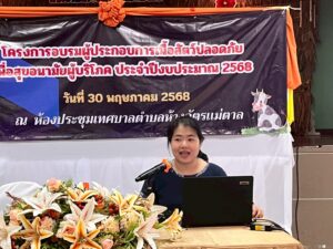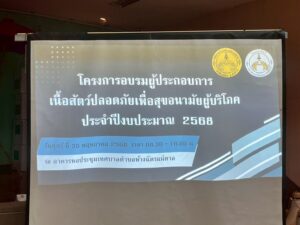 โครงการอบรมผู้ประกอบการเนื้อสัตว์ปลอดภัยเพื่อสุขอนามัยผู้บริโภค ประจำปีงบประมาณ 2568 ในวันศุกร์ที่ 30 พฤษภาคม 2568
