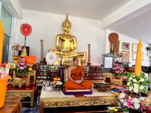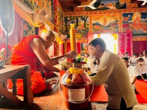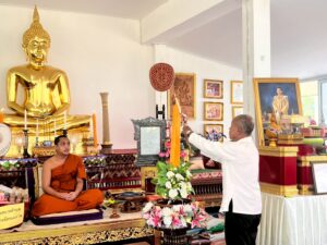 11.30 น. ถวายเทียน ณ วัดป่าพระนางเจ้าจามเทวี-หนองปู่ฮ้อ หมู่ 8
