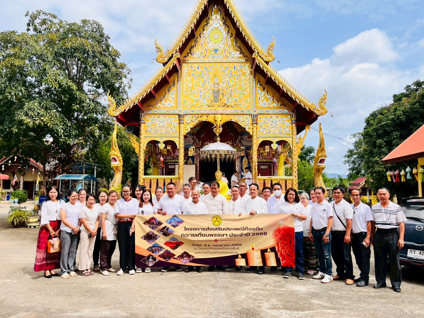 เทศบาลตำบลห้างฉัตรแม่ตาล นำโดย นายอาทิตย์ เเสงบุญเรือง นายกเทศมนตรีตำบลห้างฉัตรแม่ตาล พร้อมด้วยคณะบริหาร สมาชิกสภา ข้าราชการและพนักงานเทศบาล จัดทำโครงการส่งเสริมประเพณีท้องถิ่น ถวายเทียนพรรษา ประจำปี 2568 จำนวน 9 วัด ณ วัดและสำนักสงฆ์ในเขตพื้นที่เทศบาลตำบลห้างฉัตรแม่ตาล เวลา 8.30 น. เป็นต้นไป