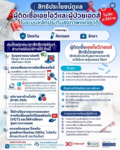 สิทธิประโยชน์ดูแลผู้ติดเชื้อเอชไอวีและผู้ป่วยเอดส์ในระบบหลักประกันสุขภาพแห่งชาติ ไม่เสียค่าใช้จ่าย