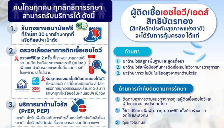 คนไทยต้องรู้ สิทธิประโยชน์ดูแลผู้ติดเชื้อเอชไอวีและผู้ป่วยเอดส์ในระบบหลักประกันสุขภาพแห่งชาติ ไม่เสียค่าใช้จ่าย