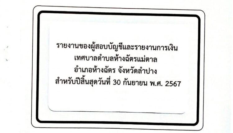 รายงานของผู้สอบบัญชีเเละรายงานการเงิน พ.ศ. 2567 0 Share FacebookTwitterGoogle+ReddItWhatsAppPinterestอีเมล์
