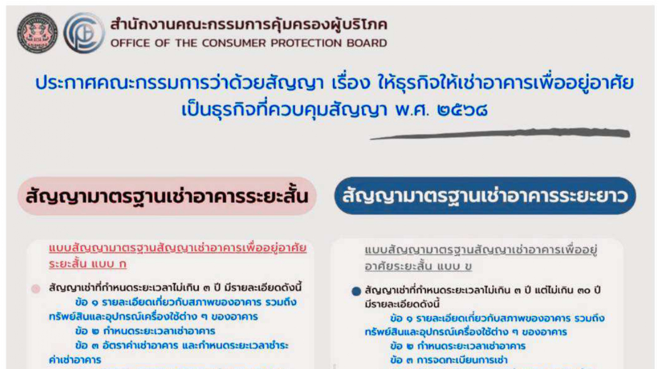 ประชาสัมพันธ์ สํานักงานคณะกรรมการคุ้มครองผู้บริโภค ประกาศคณะกรรมการว่าด้วยสัญญา เรื่อง ให้ธรุกิจให้เช่าอาคารเพื่ออยู่อาศัย เป็นธรุกิจที่ควบคุมสัญญา พ.ศ.2568 Loading... Taking too long? Reload document | Open in new tab 0 Share FacebookTwitterGoogle+ReddItWhatsAppPinterestอีเมล์