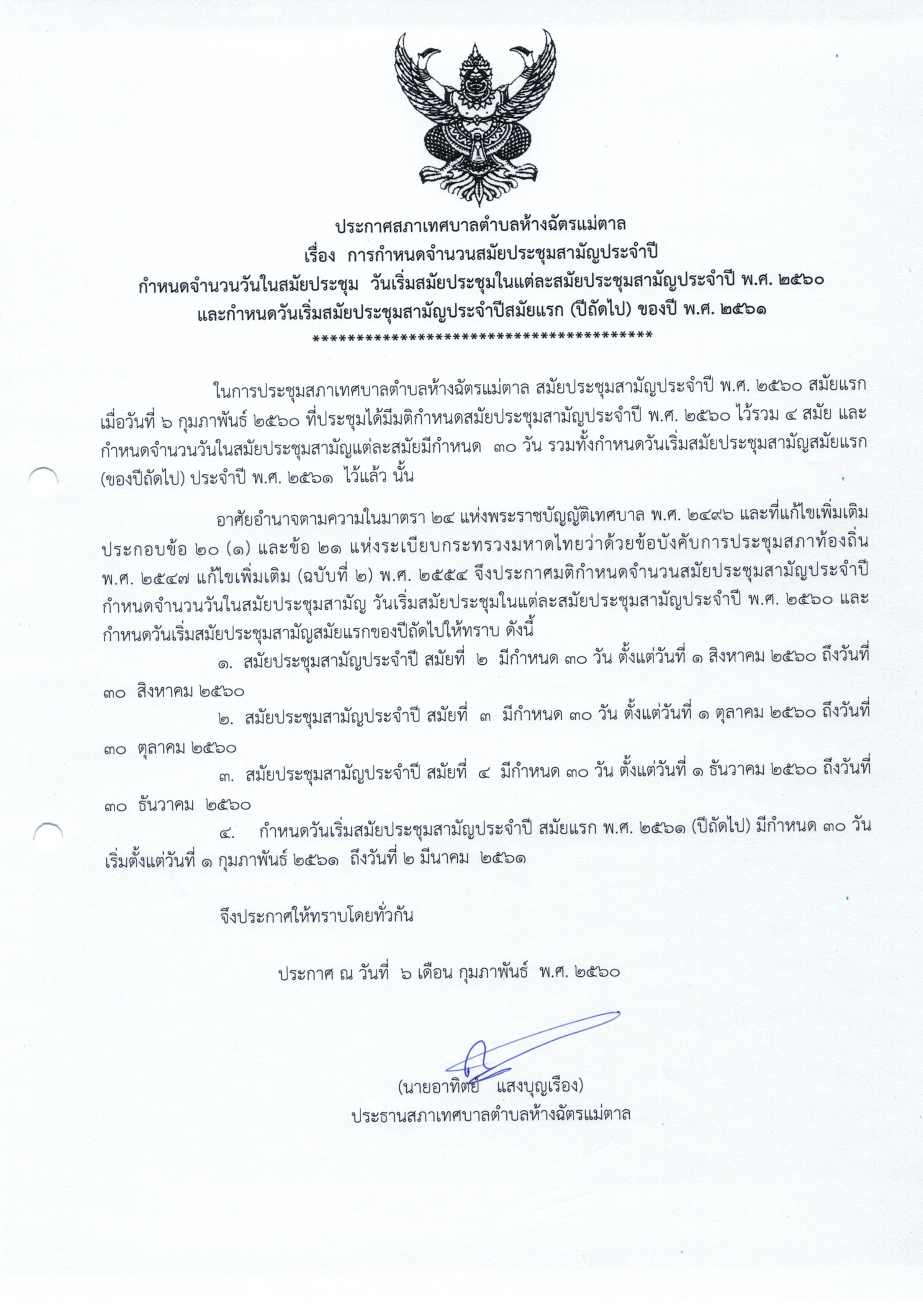 ประกาศ กำหนดสมัยประชุมสามัญประจำปี 2560 และปีถัดไป 2561 0 Share FacebookTwitterGoogle+ReddItWhatsAppPinterestอีเมล์