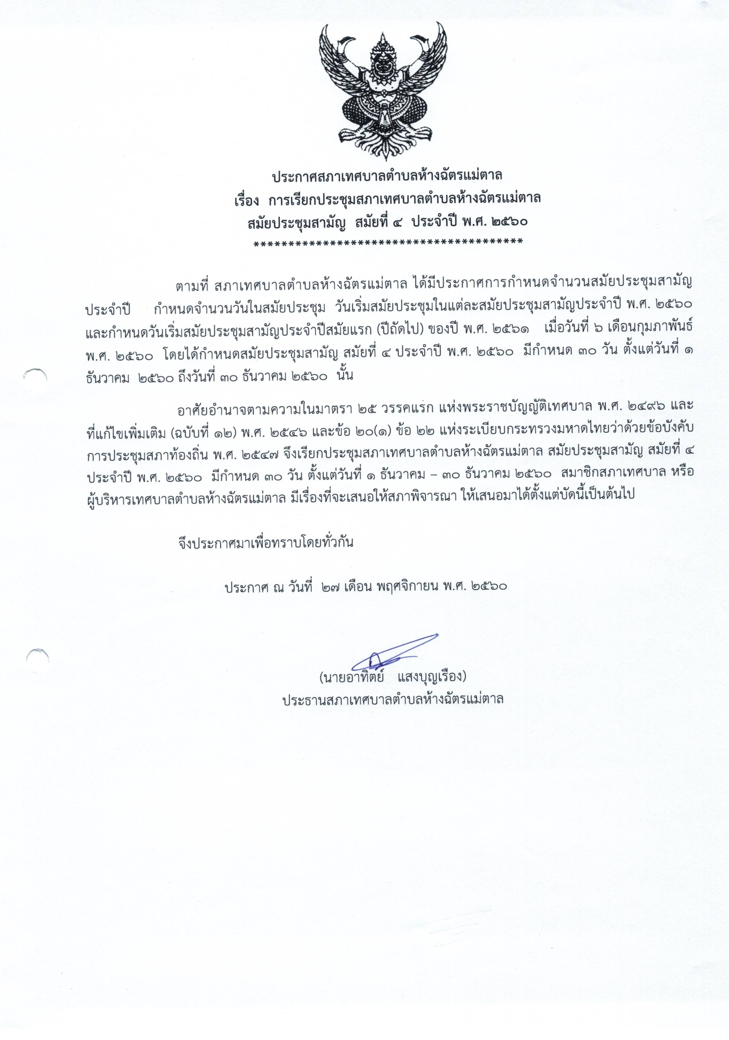 ประกาศเรียกประชุมสภา สมัยสามัญ สมัยที่ 4 ปี 2560 0 Share FacebookTwitterGoogle+ReddItWhatsAppPinterestอีเมล์