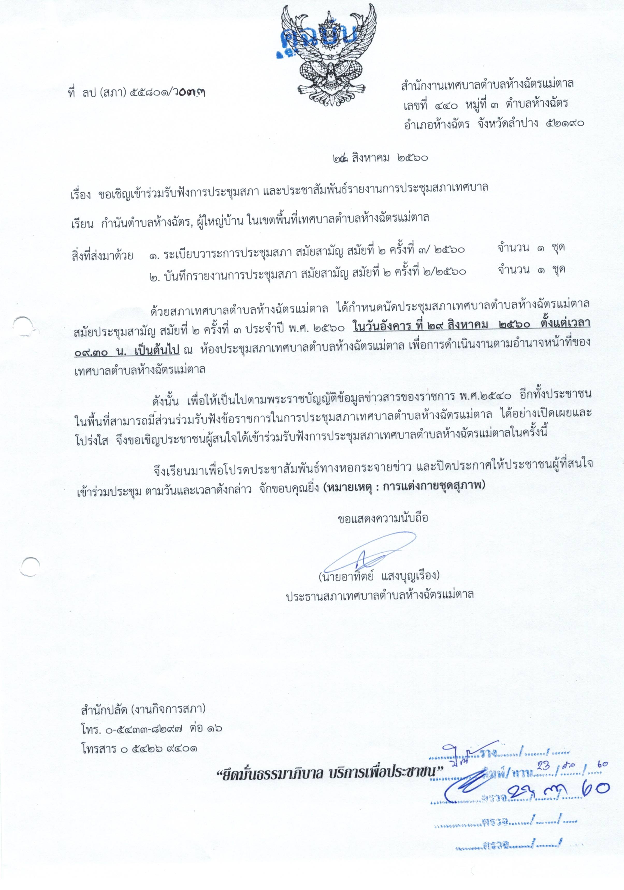 ขอเชิญร่วมรับฟังการชุมสภา สมัยวสามัญ สมัยที่ 2 ครั้งที่ 3/2560 0 Share FacebookTwitterGoogle+ReddItWhatsAppPinterestอีเมล์