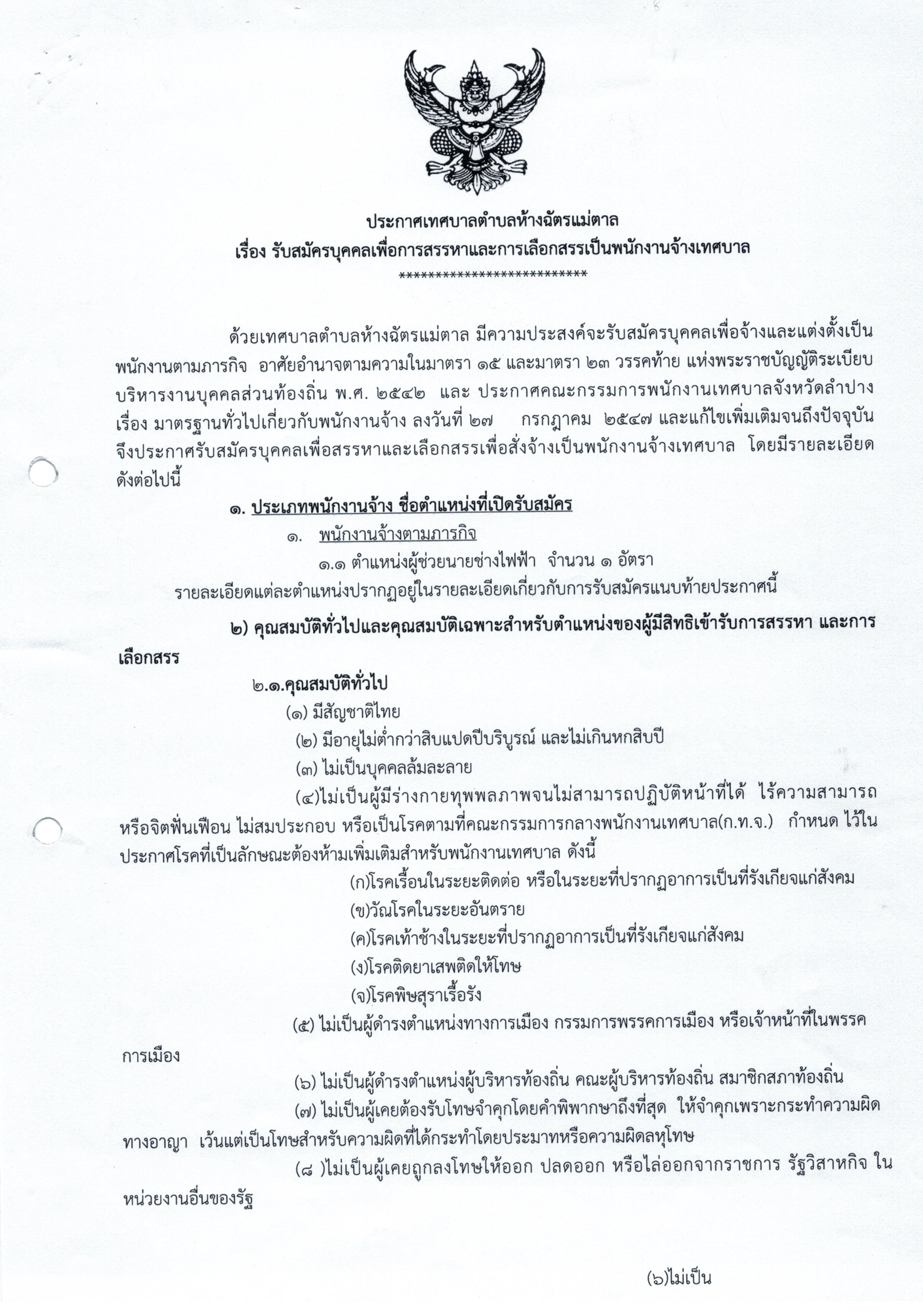 ประกาศเทศบาลตำบลห้างฉัตรแม่ตาล เรื่อง รับสมัครบุคคลเพื่อการสรรหาและเลือกสรรเป็นพนักงานจ้างเทศบาล ตำแหน่ง ผู้ช่วยนายช่างไฟฟ้า จำนวน 1 อัตรา 0 Share FacebookTwitterGoogle+ReddItWhatsAppPinterestอีเมล์