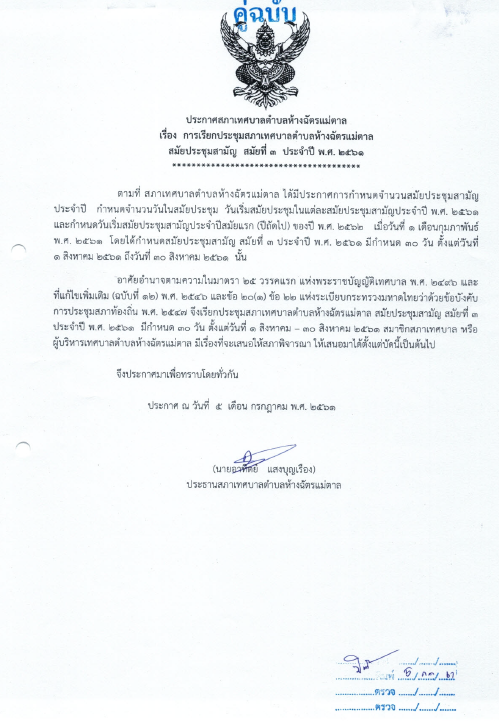 เรื่อง การเรียกประชุมสภาเทศบาลตำบลห้างฉัตรแม่ตาล สมัยประชุมสามัญ สมัยที่ 3 ประจำปี พ.ศ.2561 รายงานการประชุม ครั้งที่ 1 0 Share FacebookTwitterGoogle+ReddItWhatsAppPinterestอีเมล์