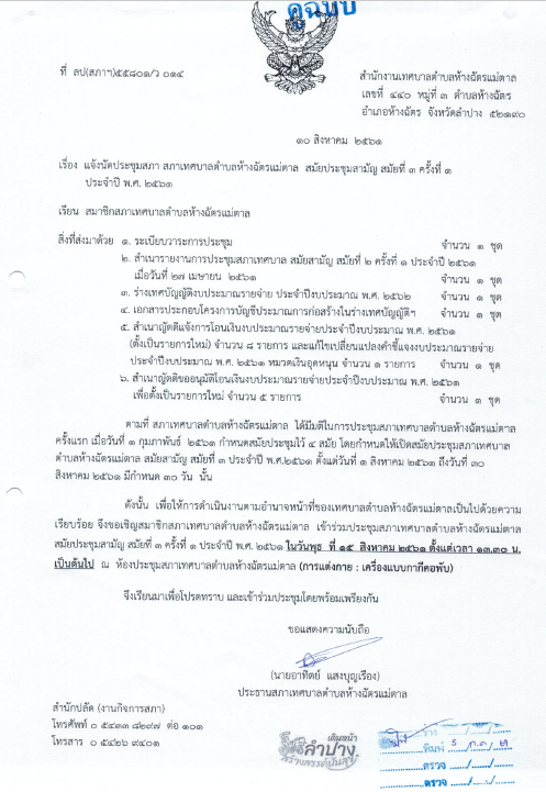 เรื่อง แจ้งนัดประชุมคณะกรรมการแปรญัตติร่างเทศบัญญัติ เรื่อง งบประมาณรายจ่ายประจำปีงบประมาณ พ.ศ. 2562 ครั้งแรก หนังสือส่งนัดประชุม15112561 0 Share FacebookTwitterGoogle+ReddItWhatsAppPinterestอีเมล์