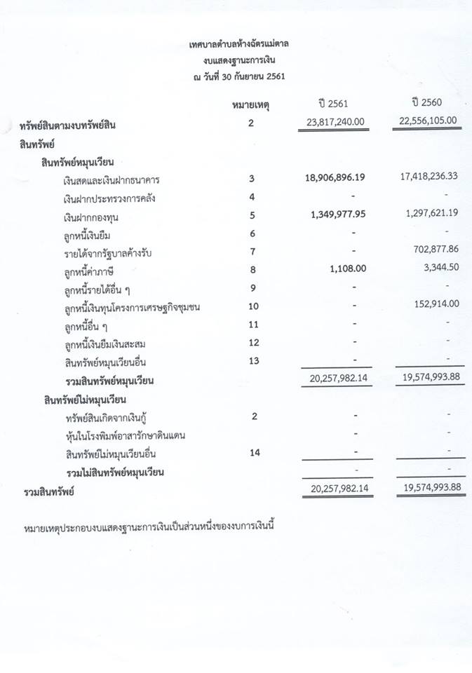เทศบาลตำบลห้างฉัตรแม่ตาล เรื่องบแสดงฐานะการเงิน ประจำปีงบประมาณ 2561 0 Share FacebookTwitterGoogle+ReddItWhatsAppPinterestอีเมล์