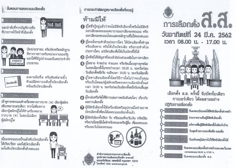 การเลือกตั้ง สส. ครั้งนี้ รับบัตรเดียว กาเบอร์เดียว ได้ผลสามอย่าง ในวันอาทิตย์ ที่ 24 มีนาคม 2562 เวลา 08.00 น. – 17.00 น. 0 Share FacebookTwitterGoogle+ReddItWhatsAppPinterestอีเมล์