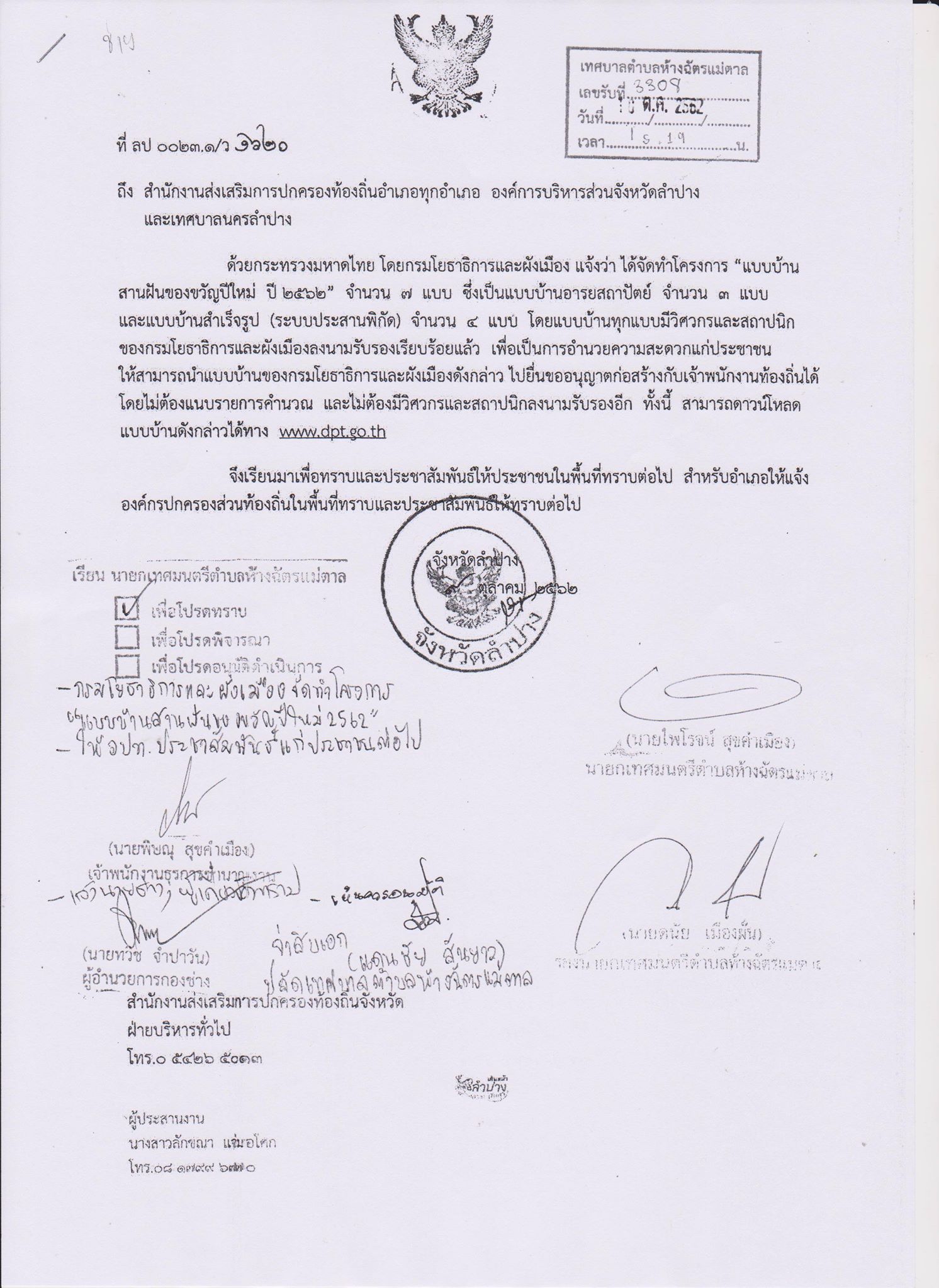 ประชาสัมพันธ์จากกรมโยธาธิการและผังเมืองได้จัดทำโครงการแบบบ้านสานฝันของขวัญปีใหม่ 2562 จำนวน 7 แบบ สามารถดาวน์โหลดแบบบ้านได้ที่ www.dpt.go.th