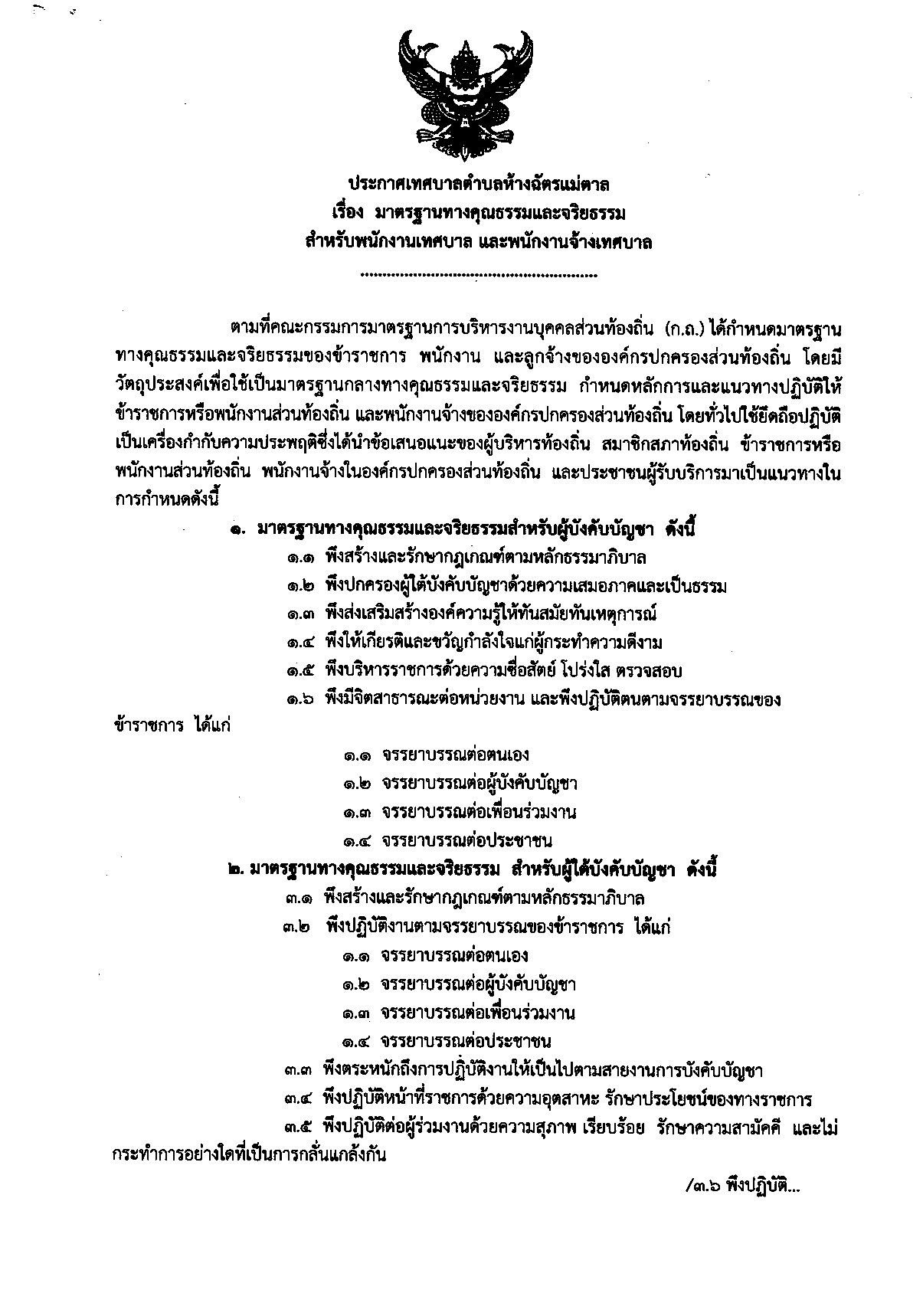 มาตรฐานทางคุณธรรมและจริยธรรมสำหรับพนักงานเทศบาลและพนักงานจ้างเทศบาล ของเทศบาลตำบลห้างฉัตรแม่ตาล 0 Share FacebookTwitterGoogle+ReddItWhatsAppPinterestอีเมล์