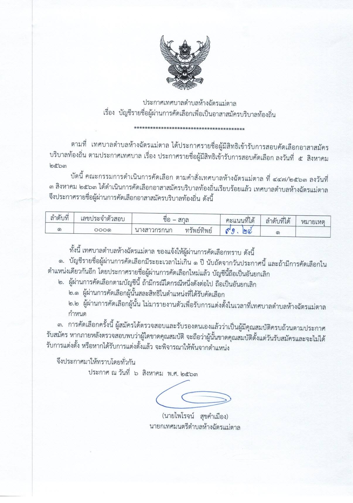 ประกาศเทศบาลตำบลห้างฉัตร เรื่อง บัญชีรายชื่อผู้ผ่านการคัดเลือกเพื่อเป็นอาสาสมัครบริบาลท้องถิ่น ประจำปี 2563 0 Share FacebookTwitterGoogle+ReddItWhatsAppPinterestอีเมล์