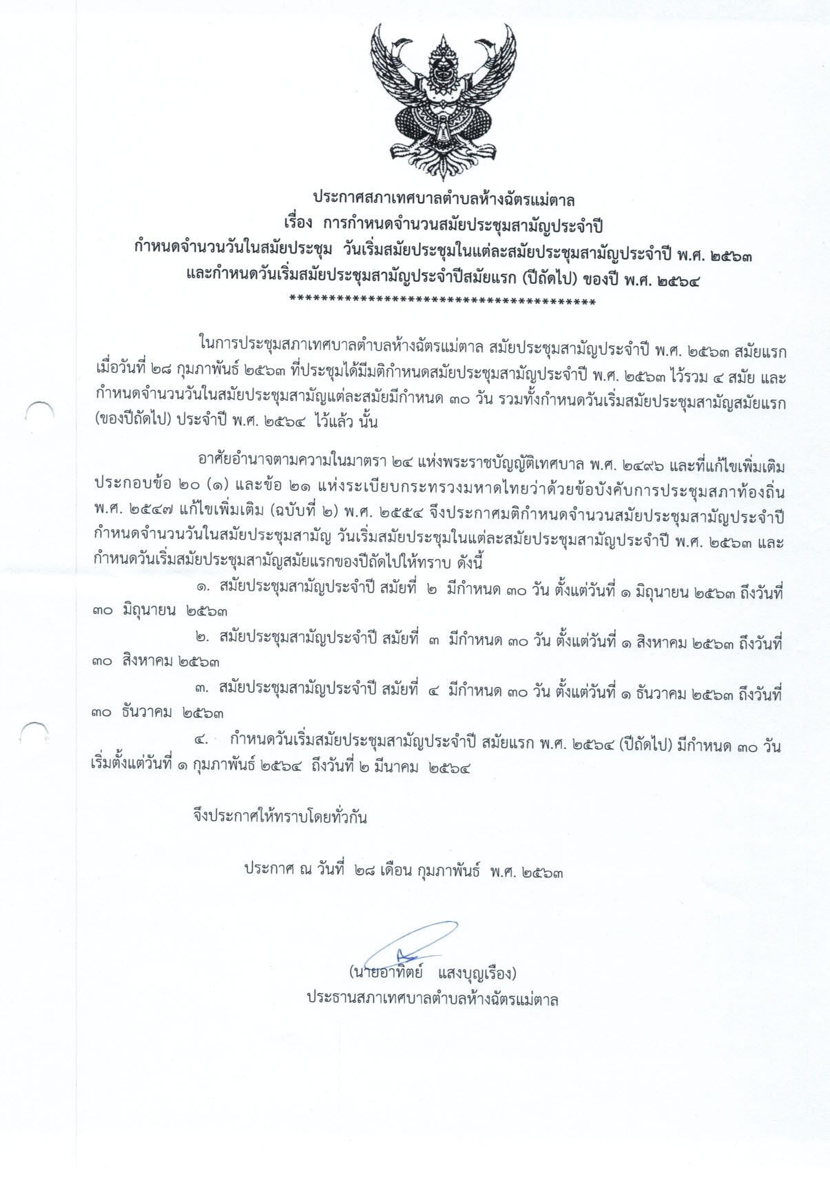 ประกาศสภาเทศบาล เรื่อง การกำหนดจำนวนสมัยประชุมสามัญประจำปี กำหนดจำนวนวันในสมัยประชุม วันเริ่มสมัยประชุมของแต่ละสมัย ปี 2563 และกำหนดวันเริ่มสมัยประชุมสามัญ สมัยแรกของปีถัดไป ปี 2564 0 Share FacebookTwitterGoogle+ReddItWhatsAppPinterestอีเมล์