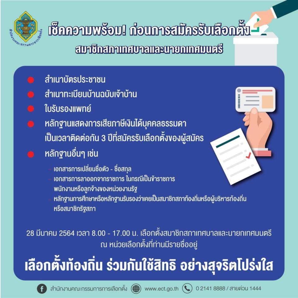 • เช็คความพร้อมก่อนการสมัครรับเลือกตั้งสมาชิกสภาเทศบาลและนายกเทศมนตรี