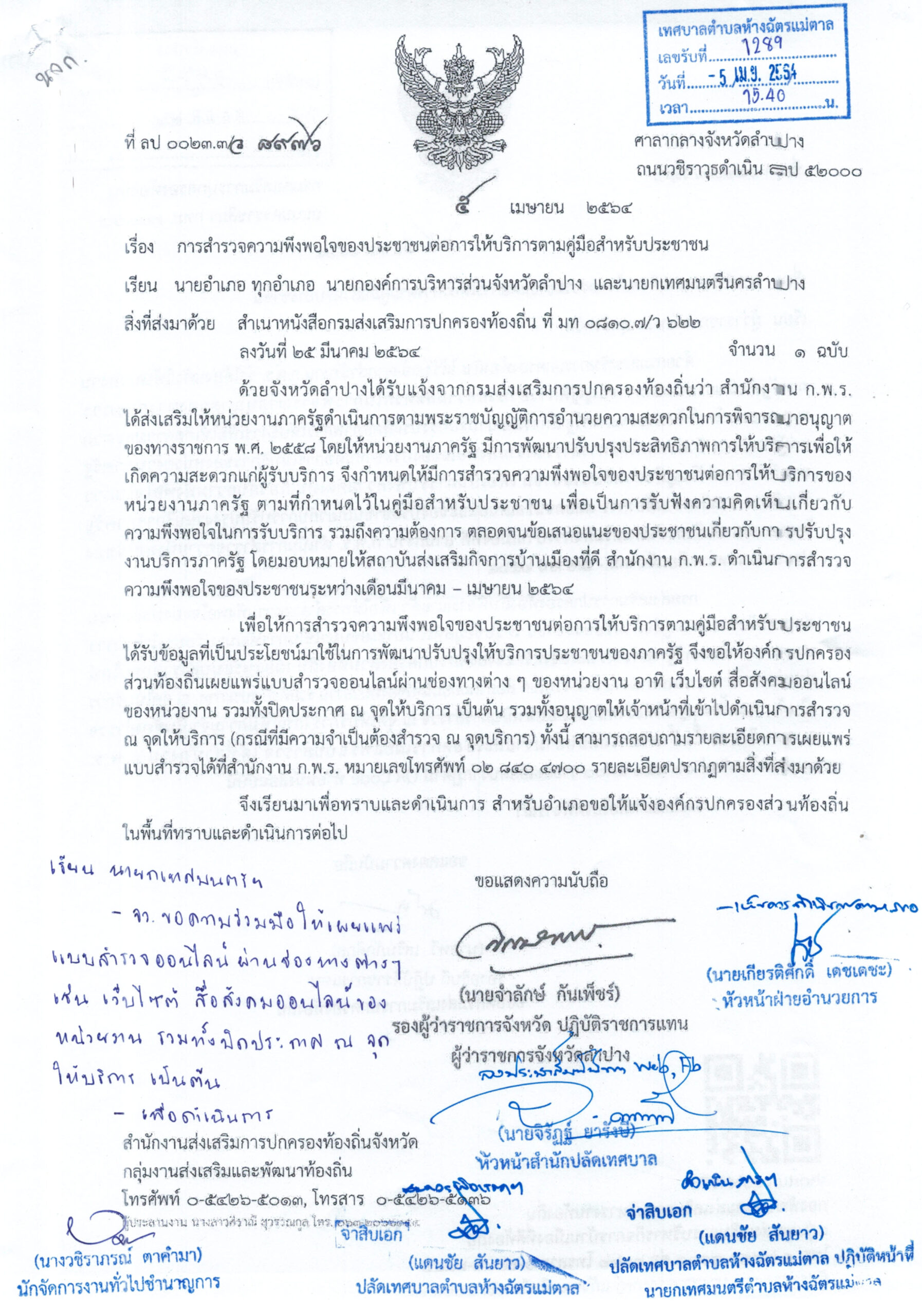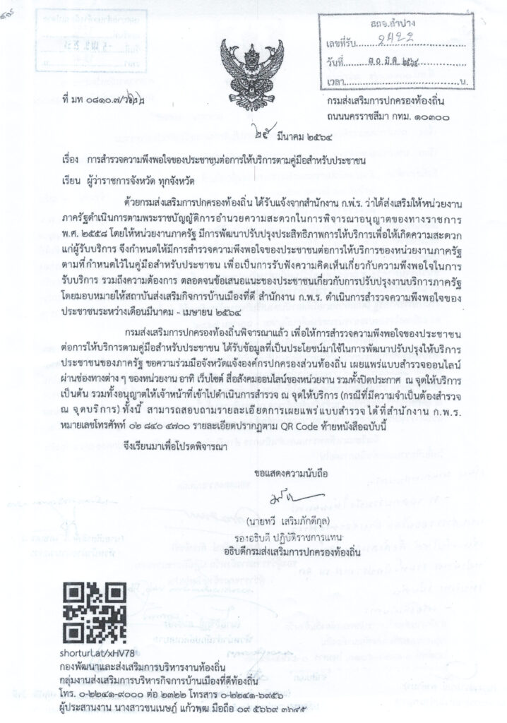 ประชาสัมพันธ์การพึงพอใจของประชาชนต่อการให้บริการตามคู่มือสำหรับประชาชชน