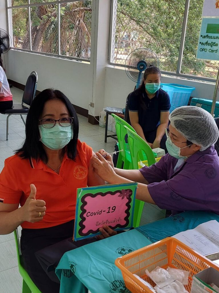 นางอำไพ อวนศรี นายกเทศมนตรีตำบลห้างฉัตรแม่ตาล มอบหมายให้ นายจิรัฏฐ์ ยารังษี หัวหน้าสำนักปลัดเทศบาลฯ พร้อมด้วยเจ้าหน้าที่งานสาธารณสุขเทศบาล นำคณะเจ้าหน้าที่เทศบาล จำนวน 10 คน เข้ารับการฉีดวัคซีนป้องกันโรคไวรัสโคโรนา 2019 (COVIC-19) โรงพยาบาลห้างฉัตร เพื่อสร้างความมั่นใจและให้กำลังใจบุคลากรที่เข้ารับการฉีดวัคซีนในครั้งนี้ และคณะผู้บริหารฯ มีนโยบายที่จะให้บุคลากรเทศบาลให้ได้รับวัคซีนครบทุกคน เพื่อความปลอดภัยในการให้บริการประชาชนต่อไป