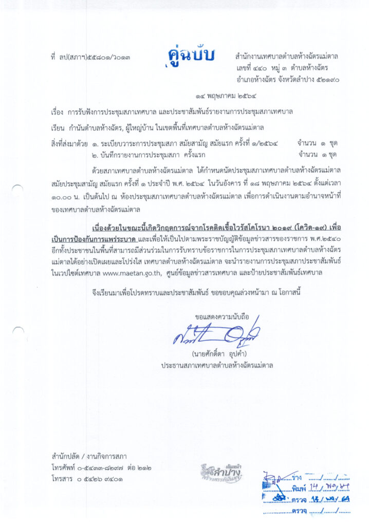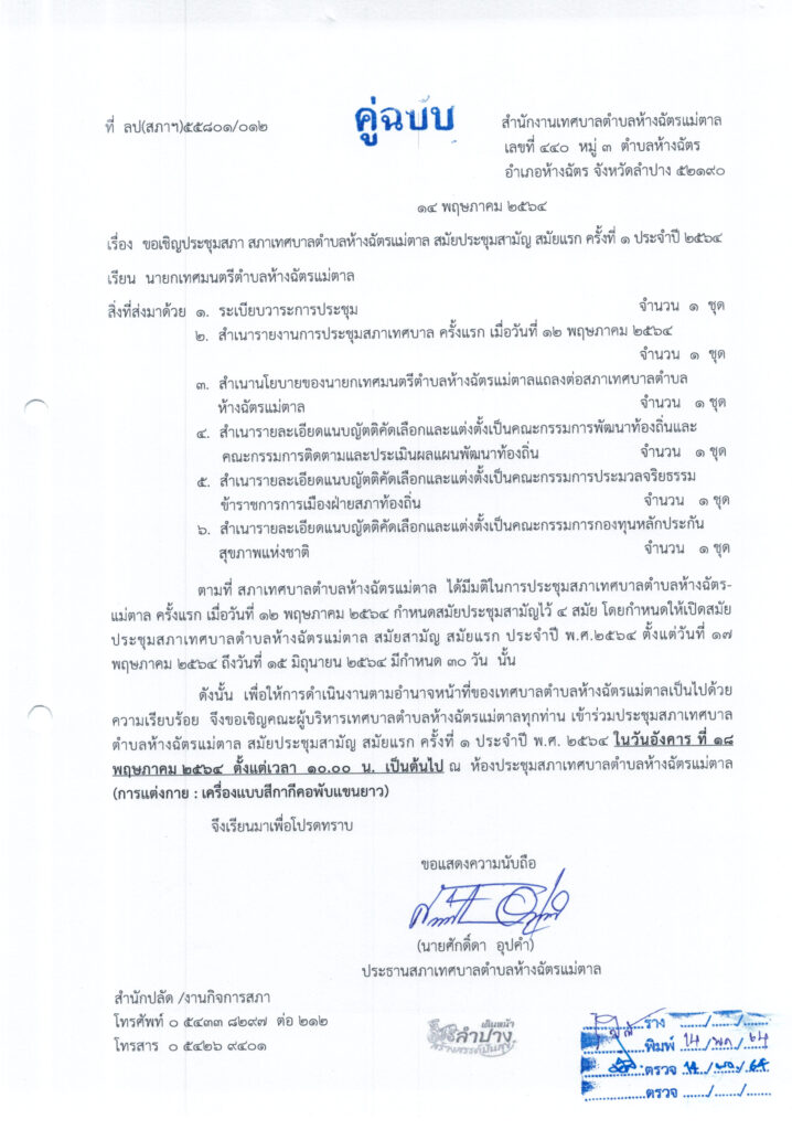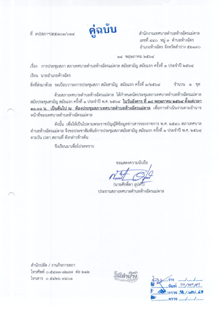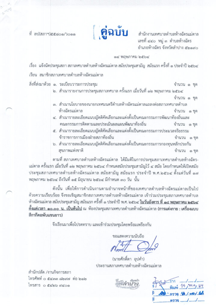 • แจ้งนัดประชุมสภา สมัยสามัญ สมัยแรก ครั้งที่ 1 ประจำปี 2564