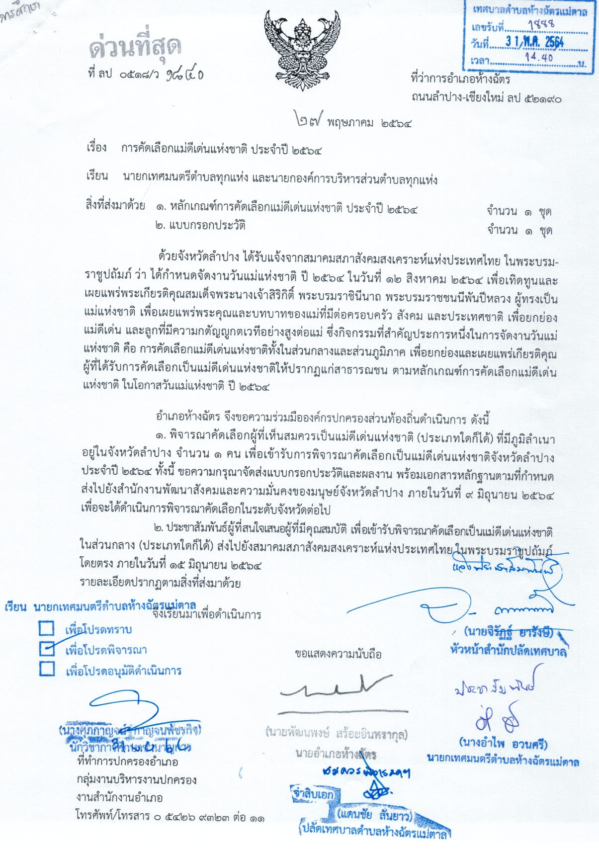 ประชาสัมพันธ์แจ้งผู้ที่สนใจเสนอผู้ที่มีคุณสมบัติ เพื่อเข้ารับพิจารณาคัดเลือกเป็นแม่ดีเด่นแห่งชาติ ประจำปี 2564 อำเภอห้างฉัตร ประชาสัมพันธ์แจ้งผู้ที่สนใจเสนอผู้ที่มีคุณสมบัติ เพื่อเข้ารับพิจารณาคัดเลือกเป็นแม่ดีเด่นแห่งชาติ ประจำปี 2564 #ผู้ที่สนใจสามารถดาวน์โหลดเอกสารแบบกรอกประวัติได้ที่ www.ncswt.or.th หรือ ตามลิงค์ด้านล่าง https://drive.google.com/…/1IFunFJMjX6ZtSgskmGi…/view… 0 Share FacebookTwitterGoogle+ReddItWhatsAppPinterestอีเมล์
