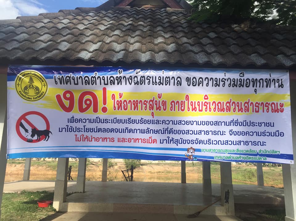 เทศบาลตำบลห้างฉัตรแม่ตาล ขอแจ้งประชาสัมพันธ์ให้กับประชาชนที่ได้นำอาหารมาให้สุนัขภายในบริเวณสวนสาธารณะ(สวนอนันตยศ) ขอความร่วมมือ งดให้อาหารภายในบริเวณดังกล่าว เนื่องจากเทศบาลตำบลห้างฉัตรแม่ตาล ได้รับเรื่องร้องเรียนว่าไม่เกิดความปลอดภัยเมื่อเข้าไปใช้บริการสวนสาธารณะจากสุนัขจรจัดที่อยู่อาศัยภายในบริเวณดังกล่าว เพื่อเป็นการบริหารจัดการเบื้องต้นในการจำกัดพื้นที่ของสุนัขจรจัด จึงขอความร่วมมืองดให้อาหารภายในสวนสาธารณะ สำหรับมาตรการในการเคลื่อนย้ายสัตว์และลดจำนวนสัตว์ อยู่ระหว่างการหารือกับหน่วยงานที่เกี่ยวข้อง