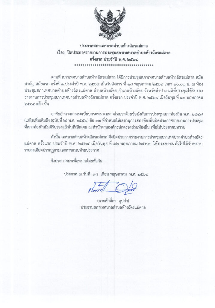 • สภาเทศบาลตำบลห้างฉัตรแม่ตาล