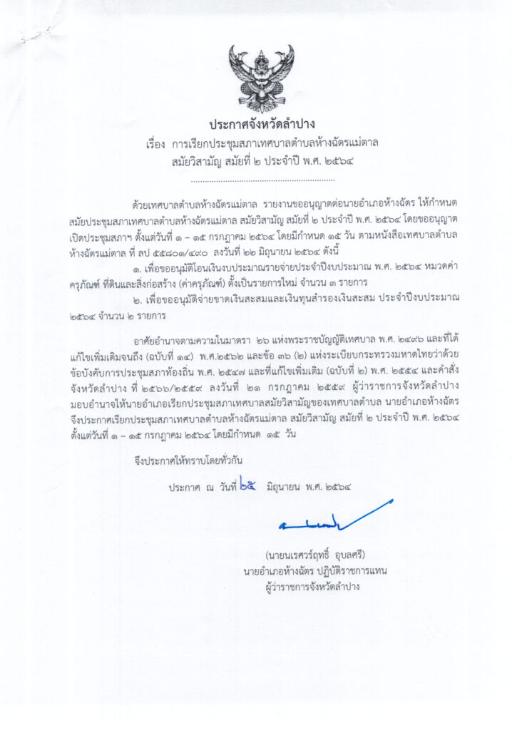 ประกาศเรียกประชุมสภา สมัยวิสามัญ สมัยที่ 2 ประจำปี 2564 0 Share FacebookTwitterGoogle+ReddItWhatsAppPinterestอีเมล์
