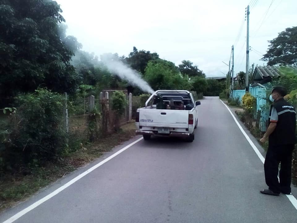 วันที่ 8 กรกฎาคม 2564 นางอำไพ อวนศรี นายกเทศมนตรีตำบลห้างฉัตรแม่ตาล ร่วมกับศูนย์ควบคุมโรคติดต่อนำโดยแมลงที่ 1.2 ลำปาง กรมควบคุมโรค ลงพื้นที่ออกพ่นยากำจัดแมลง (กิ้งกือหลังแบน) ในเขตพื้นที่บ้านขามแดง หมู่ที่ 6