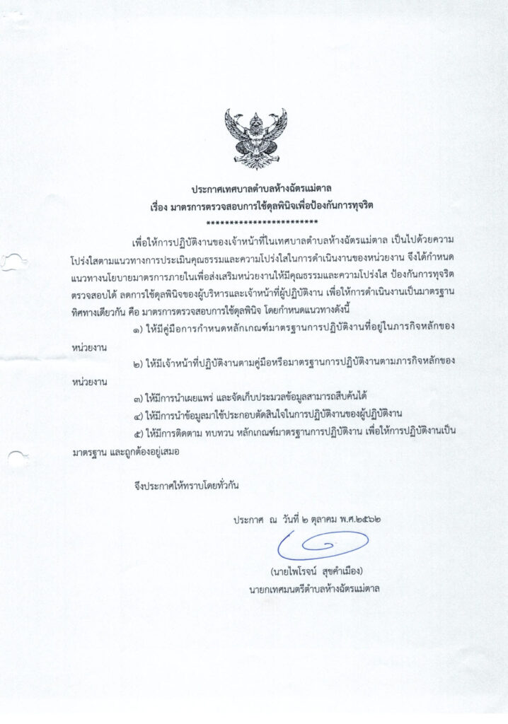 ประกาศ เรื่องมาตรการตรวจสอบการใช้ดุลพินิจเพื่อป้องกันการทุจริต 0 Share FacebookTwitterGoogle+ReddItWhatsAppPinterestอีเมล์