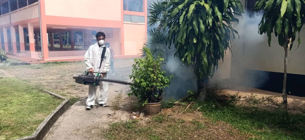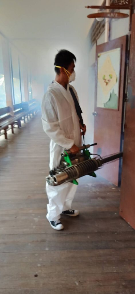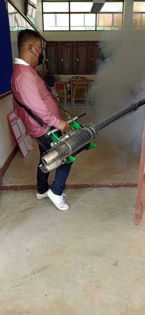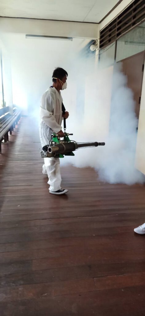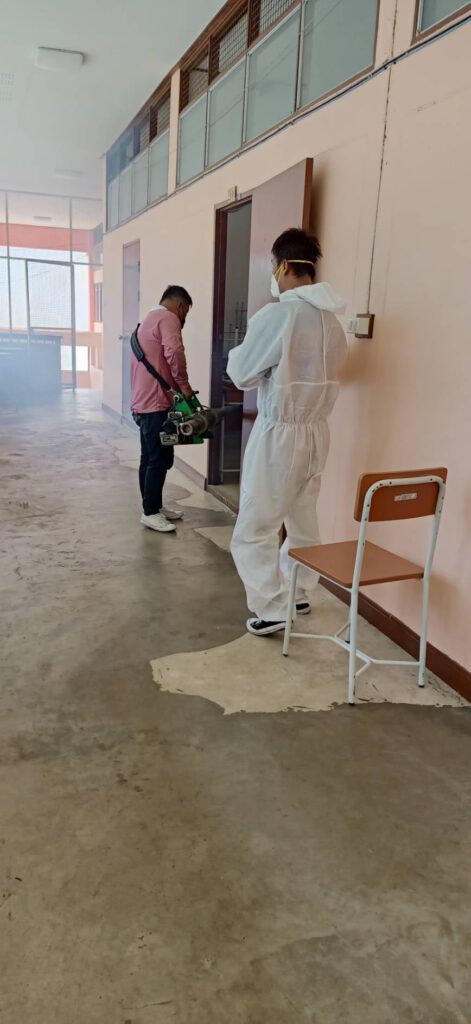 วันที่ 13 สิงหาคม 2564 นางอำไพ อวนศรี นายกเทศมนตรีตำบลห้างฉัตรแม่ตาล มอบหมายให้ นายวีระ ธิรินทอง นักป้องกันและบรรเทาสาธารณภัยชำนาญการ พร้อมเจ้าหน้าที่งานป้องกันฯ เข้าฉีดพ่นยายุง ณ โรงเรียนห้างฉัตรวิทยา เพื่อเตรียมความพร้อมก่อนเปิดภาคเรียน 0 Share FacebookTwitterGoogle+ReddItWhatsAppPinterestอีเมล์
