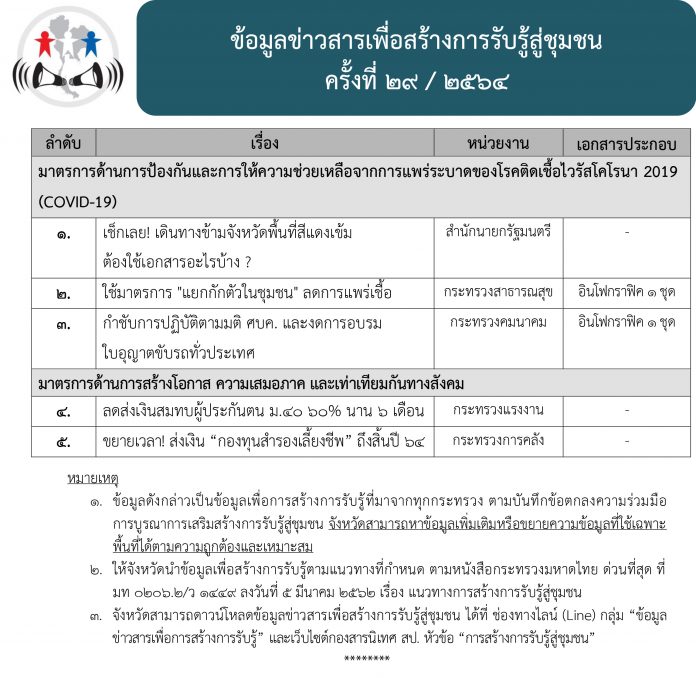 กระทรวงมหาดไทยแจ้งข้อมูลข่าวสารเพื่อการรับรู้สู่ชุมชน ครั้งที่ 29/2564 0 Share FacebookTwitterGoogle+ReddItWhatsAppPinterestอีเมล์